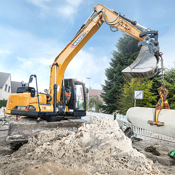SANY SY135C to kompaktowa koparka klasy 15-tonowej, zaprojektowana do intensywnej pracy przy zachowaniu doskonałej zwrotności i niskiego zużycia paliwa. Pomimo kompaktowych wymiarów maszyna oferuje wyjątkowo wysoką siłę kopania łyżki i imponujący zasięg roboczy co pozwala sprostać każdemu zadaniu.