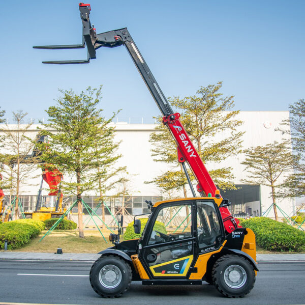 SANY STH625e to przełomowa, w pełni elektryczna ładowarka teleskopowa, która łączy kompaktowe wymiary z imponującą wydajnością i zaawansowaną technologią. Zaprojektowana z myślą o pracy wewnątrz pomieszczeń, w obszarach miejskich oraz innych ograniczonych przestrzeniach, oferuje znaczące korzyści dzięki zerowej emisji spalin, minimalnemu hałasowi i wibracjom. Dzięki udźwigowi 2500 kg i maksymalnej wysokości podnoszenia 6 metrów, STH625e doskonale radzi sobie z szerokim zakresem zadań.