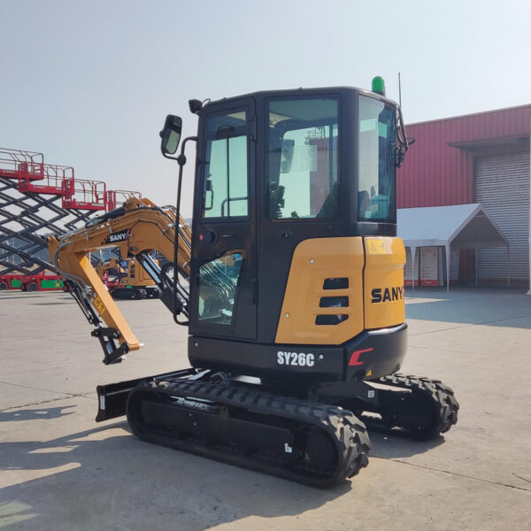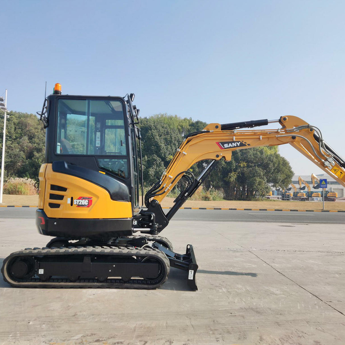 SANY SY26C to minikoparka o krótkim promieniu obrotu, która łączy kompaktowe wymiary z imponującą wydajnością. Zoptymalizowana pod kątem pracy w miejscach o ograniczonej przestrzeni, takich jak budowy miejskie, ogrodnictwo czy rolnictwo. Dzięki niskiej masie własnej umożliwiającej łatwy transport i bezpiecznym punktom mocowania, SY26C jest wyjątkowo mobilna.