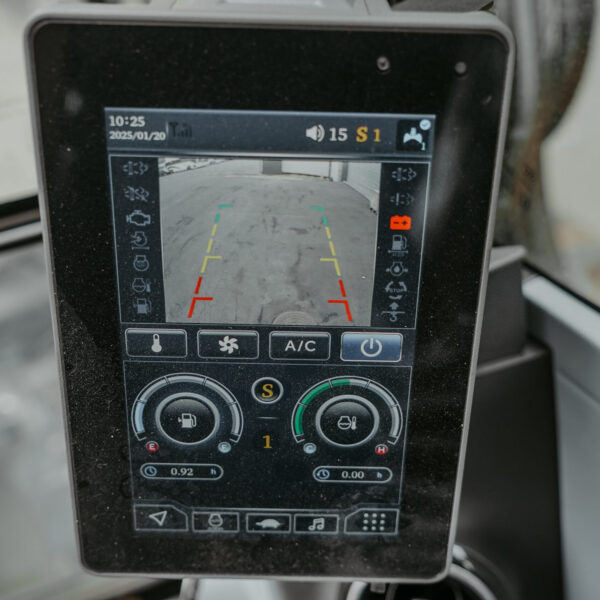 Precyzja i bezpieczeństwo, funkcja pozycji pływającej lemiesza ułatwia precyzyjne wyrównywanie terenu, a tylna kamera cofania o szerokim kącie 110° wraz z reflektorami LED gwarantują pełną widoczność i bezpieczne manewrowanie w każdych warunkach.