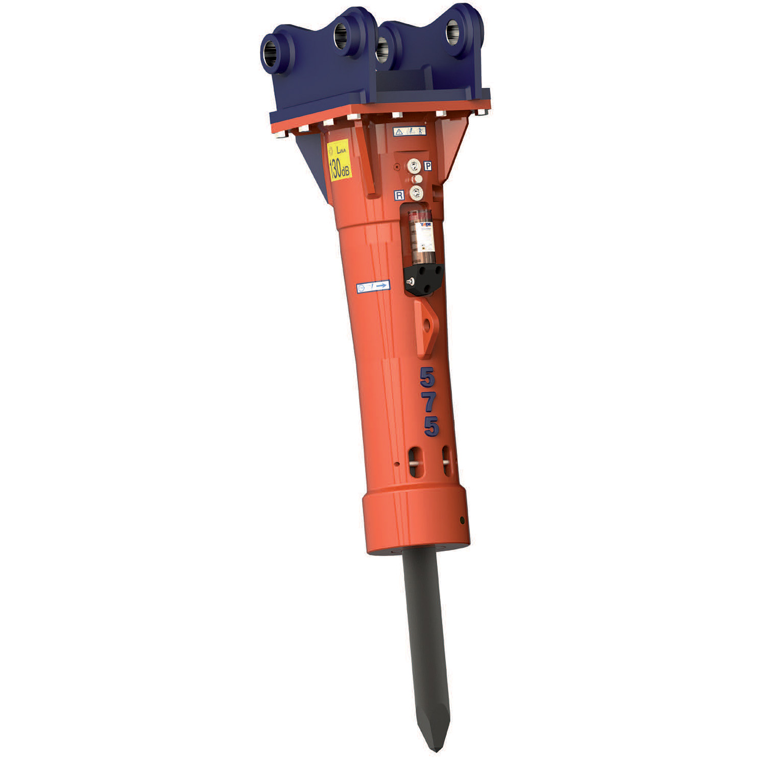 Młot hydrauliczny TABE MT 575. Waga 600kg, grot Ø90mm. Wytrzymały młot ze średniego segmentu, do budownictwa i rozbiórek.